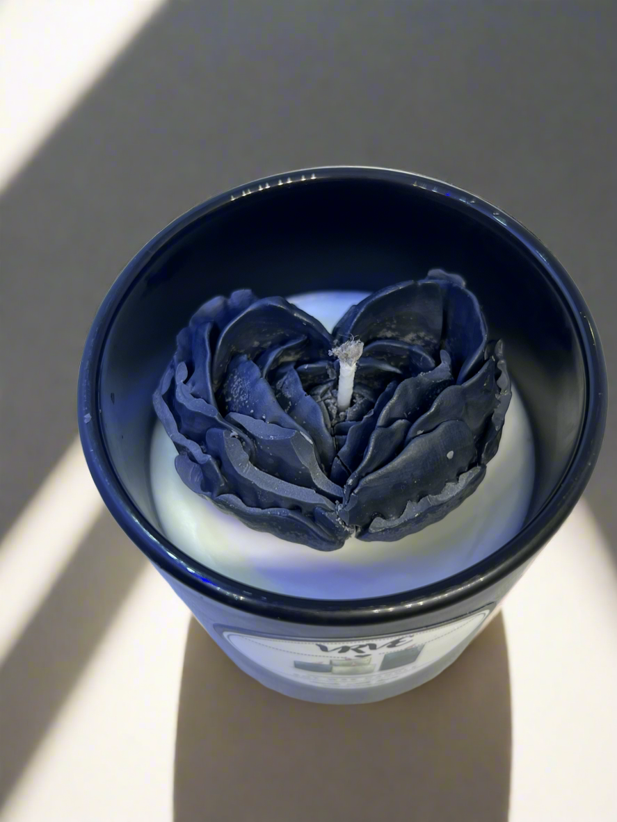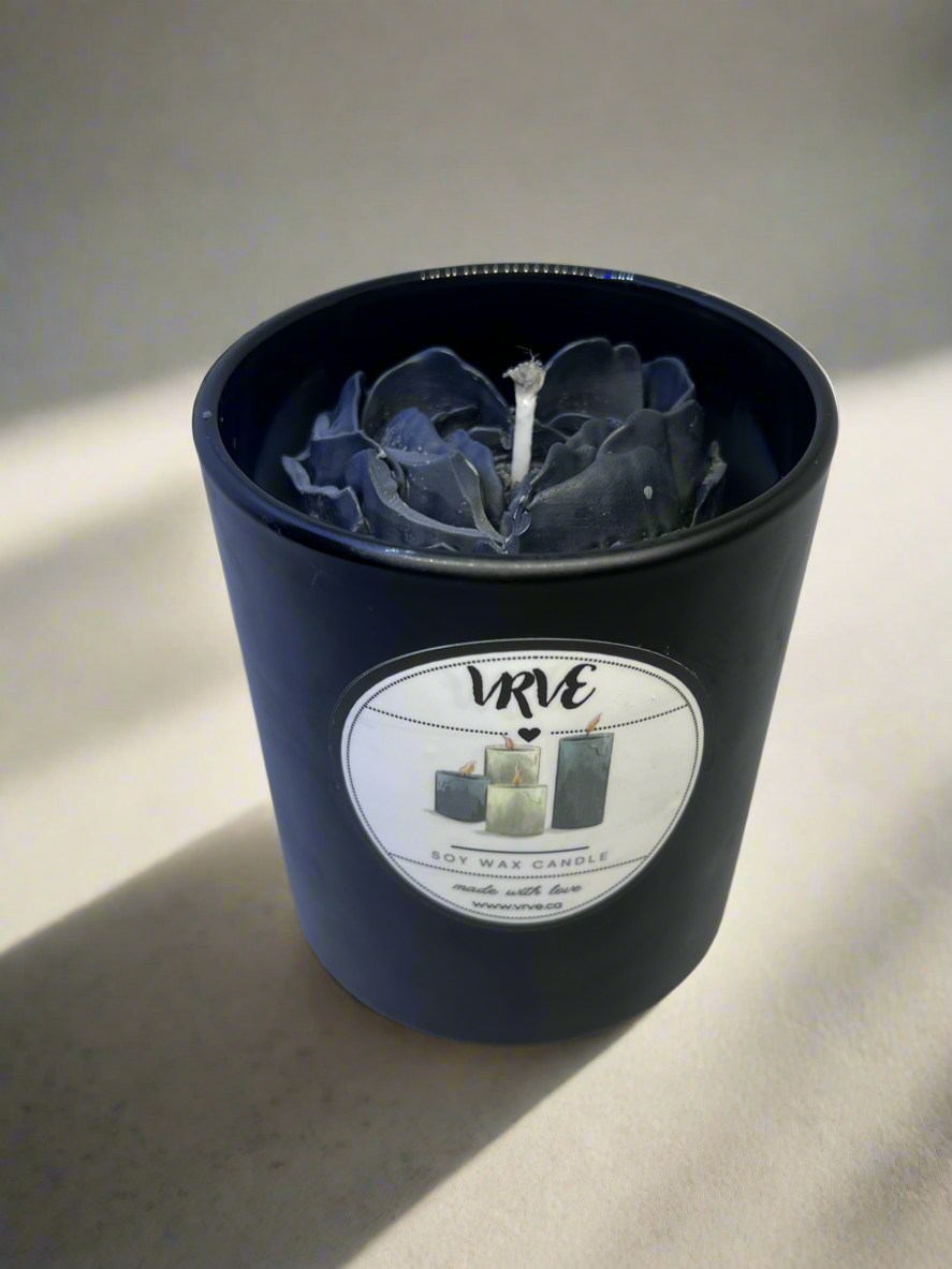 Enhance any room with our Black Jar Candle. The sleek black jar complements any decor while the scented candle adds a pleasant aroma. Adorned with a black flower on top, this candle is the perfect blend of style and function. Elevate your space with this beautiful candle.
