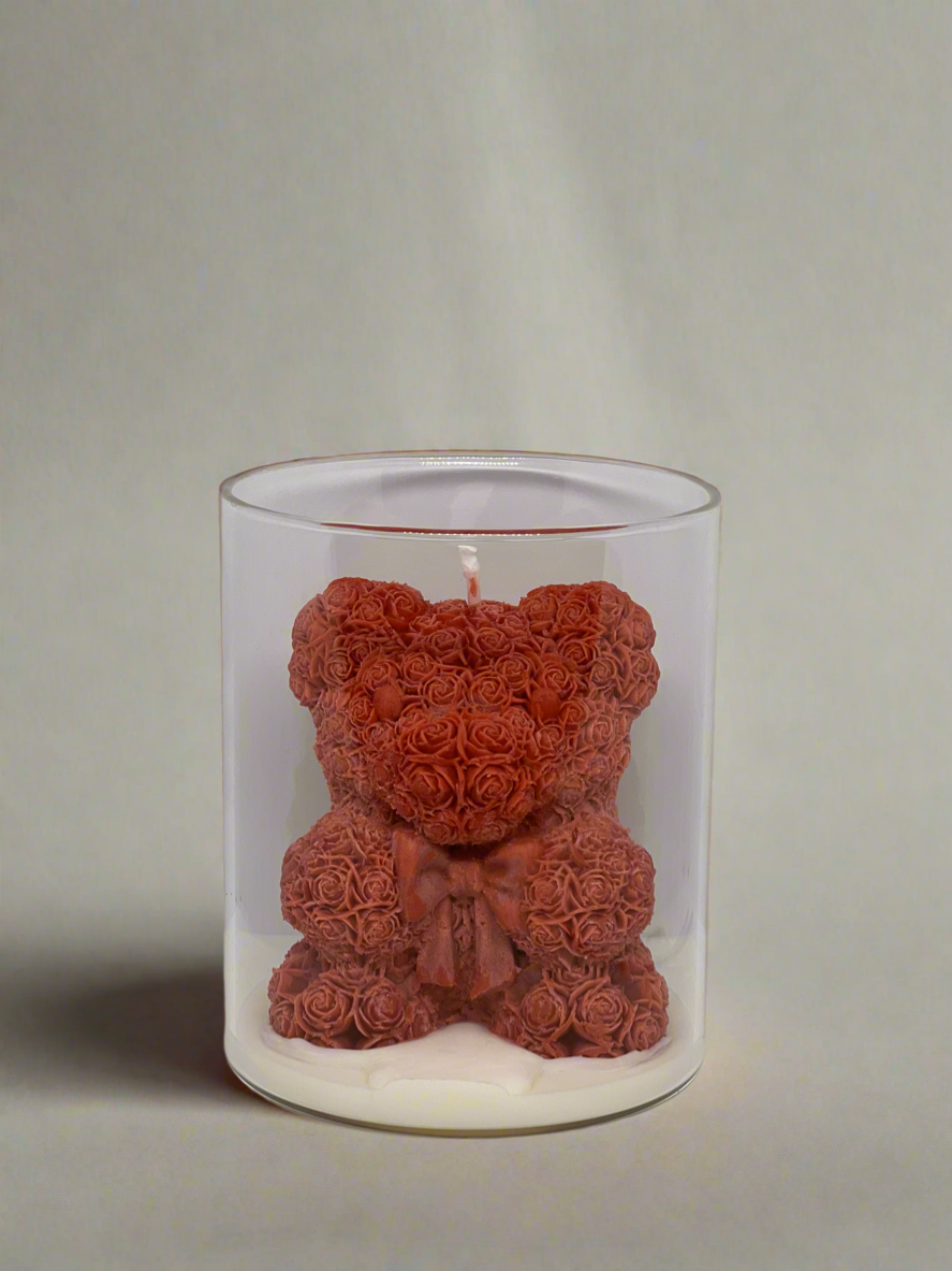 This Teddy bear candle is a charming addition to any room. Crafted in a jar with a lid, it features a delightful scent that will linger for hours. A perfect gift for teddy bear enthusiasts, this candle brings a touch of warmth and coziness to any space.